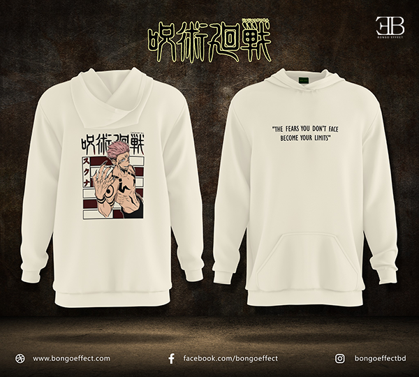 Color: Cream White Fabric: Cotton GSM: 320 Fit: Regular Neck: Hoodie Additional Value: Anime Print Wash Care: Do not Bleach & Hang Dry